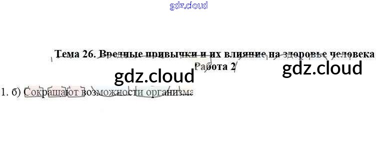 Работа 2 Ответы к теме: 26. Вредные привычки и их влияние на здоровье человека по ОБЖ 5 класс Рабочая тетрадь Демидов Лицей