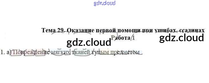 Работа 1 Ответы к теме: 29. Оказание первой помощи при ушибах, ссадинах по ОБЖ 5 класс Рабочая тетрадь Демидов Лицей