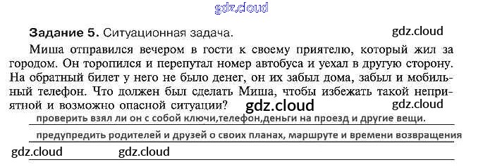 Ответ на задание 5 Рабочая тетрадь ОБЖ за 5 (пятый) класс Драновская 2014