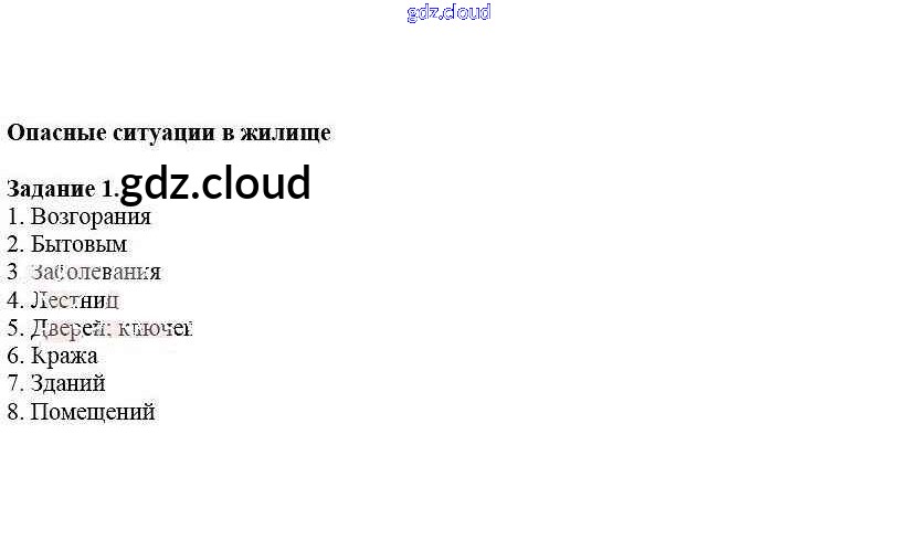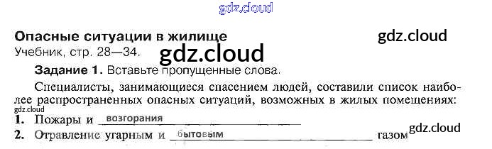 Ответы к теме 6. Опасные ситуации в жилище по ОБЖ 5 класс Рабочая тетрадь Драновская Аст/Астрель