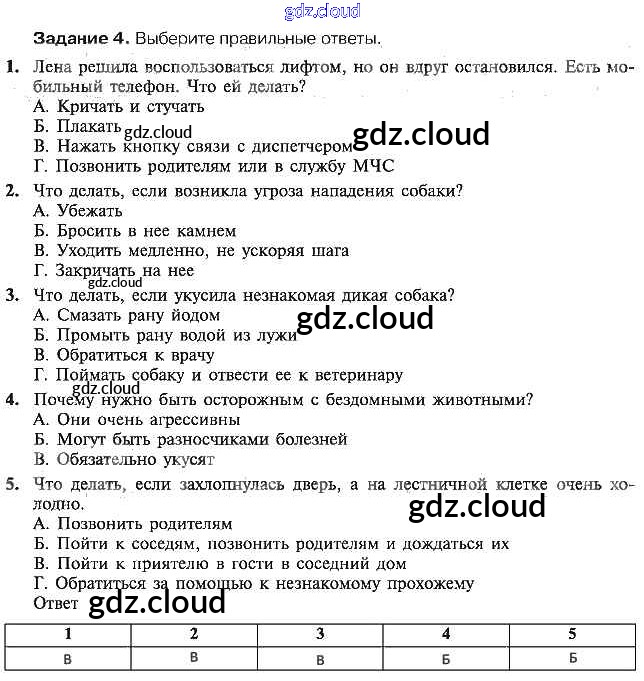 Ответ на задание 4 Рабочая тетрадь ОБЖ за 5 (пятый) класс Драновская 2014