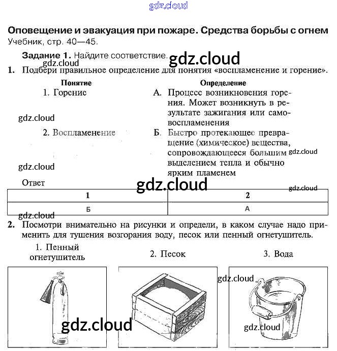 Ответы к теме 8. Оповещение и эвакуация при пожаре. Средства борьбы с огнем по ОБЖ 5 класс Рабочая тетрадь Драновская Аст/Астрель