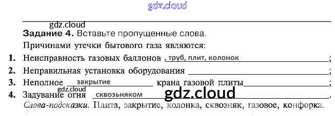 Ответ на задание 4 Рабочая тетрадь ОБЖ за 5 (пятый) класс Драновская 2014