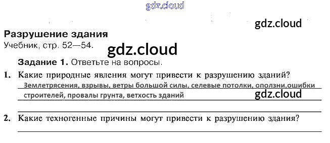 Ответы к теме 11. Разрушение здания по ОБЖ 5 класс Рабочая тетрадь Драновская Аст/Астрель