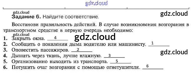 Ответ на задание 6 Рабочая тетрадь ОБЖ за 5 (пятый) класс Драновская 2014