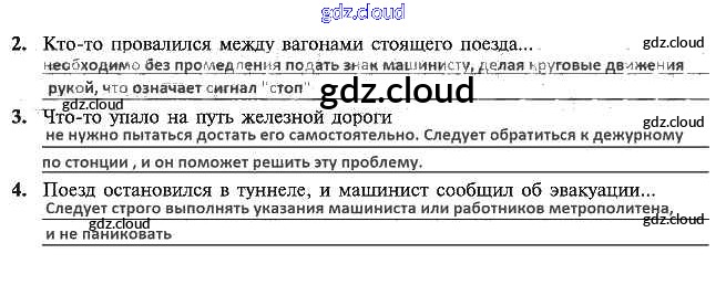 Ответы к теме 14. В метро или электричке может произойти любая неприятность по ОБЖ 5 класс Рабочая тетрадь Драновская Аст/Астрель