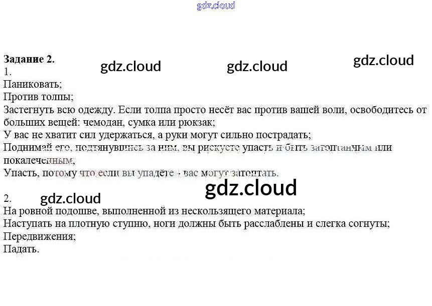 Ответ на задание 2 Рабочая тетрадь ОБЖ за 5 (пятый) класс Драновская 2014