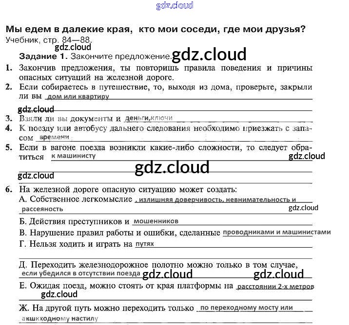 Ответы к теме 16. Мы едем в далекие края, кто мои соседи, где мои друзья по ОБЖ 5 класс Рабочая тетрадь Драновская Аст/Астрель