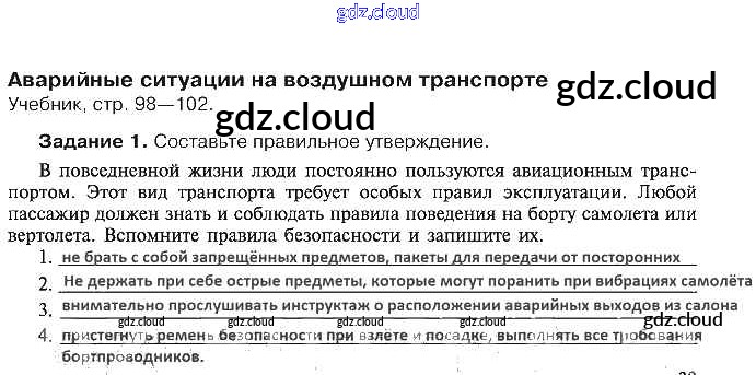 Ответы к теме 19. Аварийные ситуации на воздушном транспорте по ОБЖ 5 класс Рабочая тетрадь Драновская Аст/Астрель