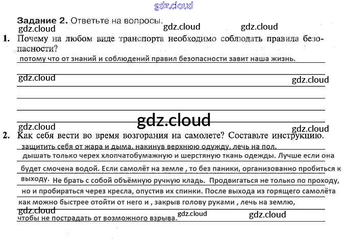 Ответы к теме 19. Аварийные ситуации на воздушном транспорте по ОБЖ 5 класс Рабочая тетрадь Драновская Аст/Астрель