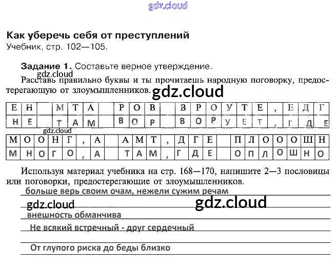 Ответы к теме 20. Как уберечь себя от преступлений по ОБЖ 5 класс Рабочая тетрадь Драновская Аст/Астрель