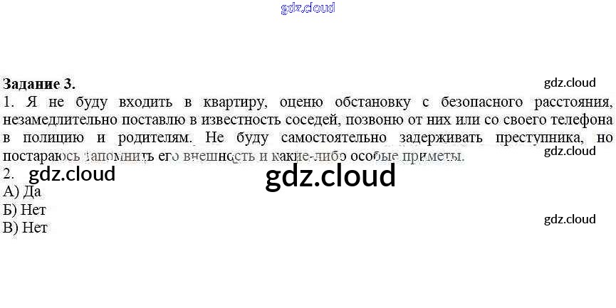 Ответ на задание 3 Рабочая тетрадь ОБЖ за 5 (пятый) класс Драновская 2014 ФГОС онлайн и без номера телефона.