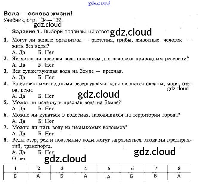 Ответы к теме 24. Вода — основа жизни! по ОБЖ 5 класс Рабочая тетрадь Драновская Аст/Астрель