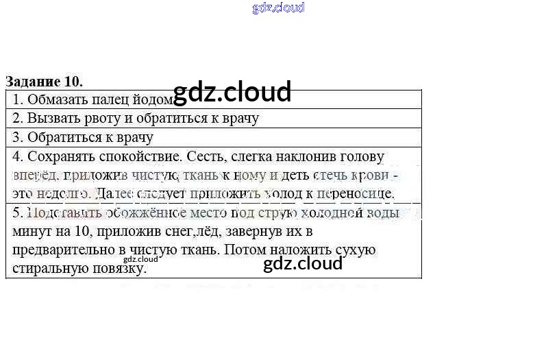 Ответ на задание 10 Рабочая тетрадь ОБЖ за 5 (пятый) класс Драновская 2014