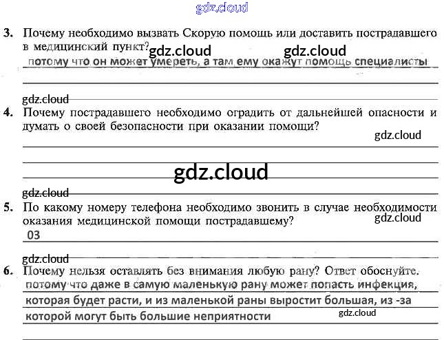 Ответы к теме 29. Что следует знать об оказании первой медицинской помощи (ПМП) по ОБЖ 5 класс Рабочая тетрадь Драновская Аст/Астрель