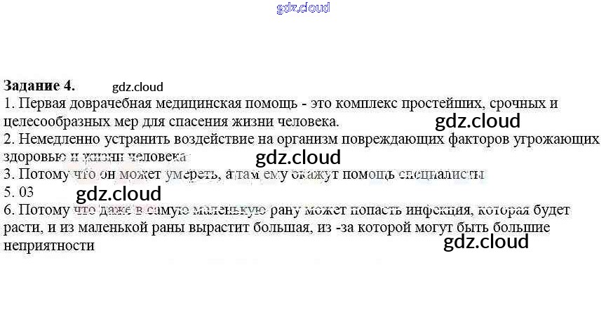 Ответ на задание 4 Рабочая тетрадь ОБЖ за 5 (пятый) класс Драновская 2014