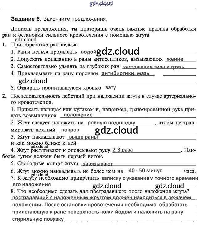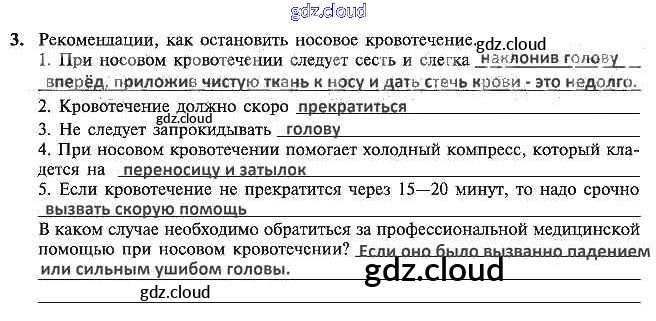 Ответы к теме 29. Что следует знать об оказании первой медицинской помощи (ПМП) по ОБЖ 5 класс Рабочая тетрадь Драновская Аст/Астрель