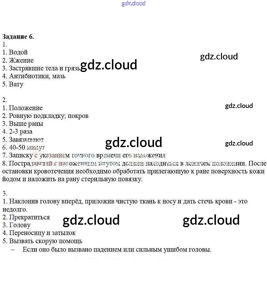 Ответ на задание 6 Рабочая тетрадь ОБЖ за 5 (пятый) класс Драновская 2014