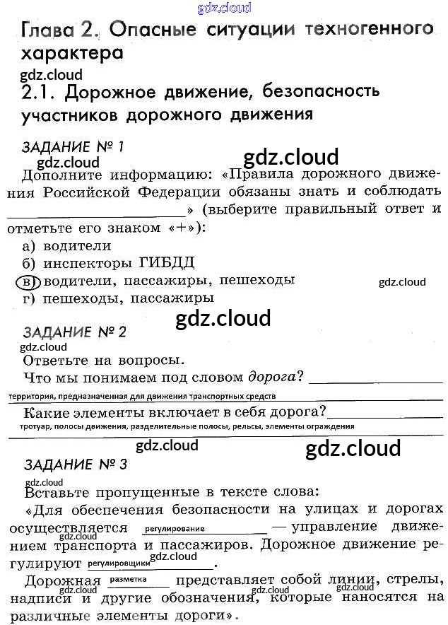 Ответы к главе 2 по ОБЖ 5 класс Рабочая тетрадь Смирнов Просвещение