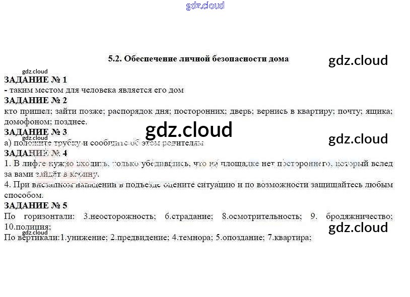 Ответы к главе 5 по ОБЖ 5 класс Рабочая тетрадь Смирнов Просвещение