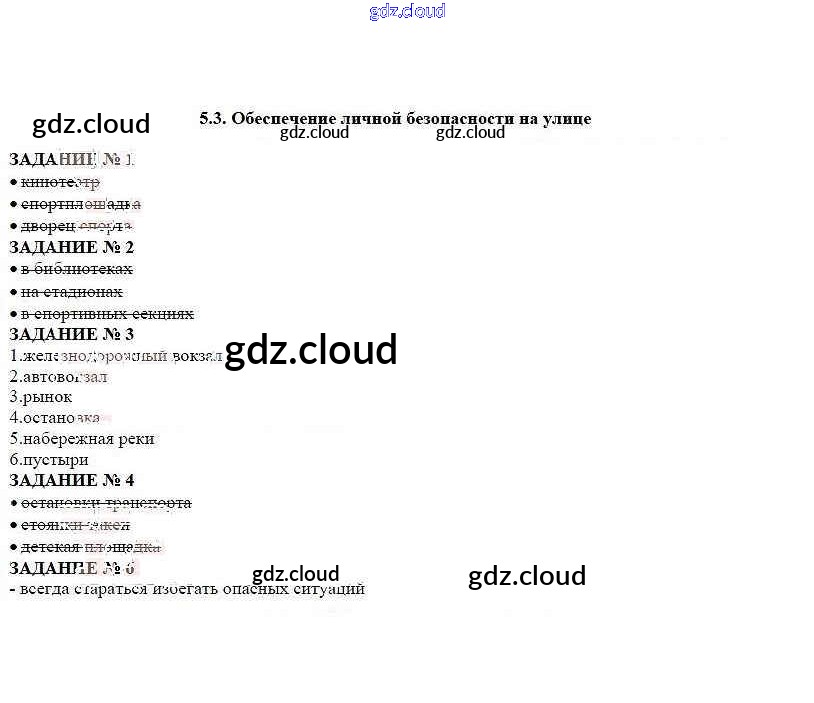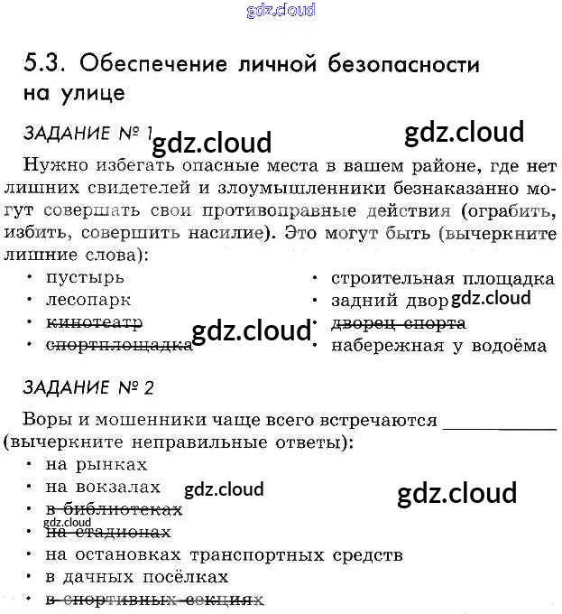 Ответы к главе 5 по ОБЖ 5 класс Рабочая тетрадь Смирнов Просвещение