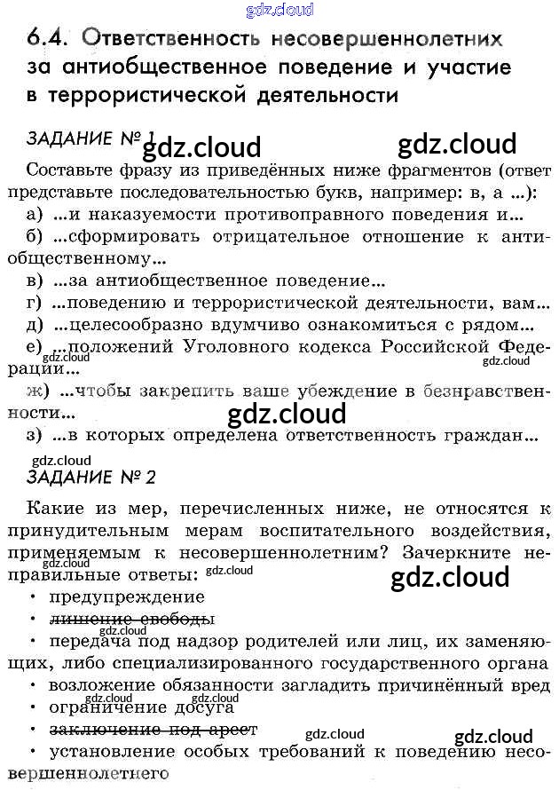 Ответы к главе 6 по ОБЖ 5 класс Рабочая тетрадь Смирнов Просвещение
