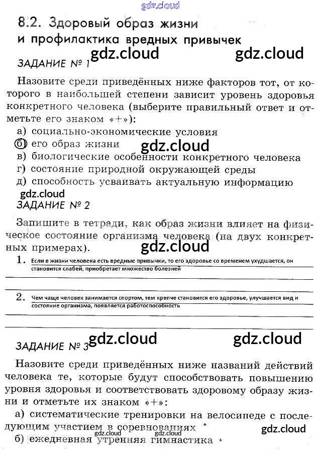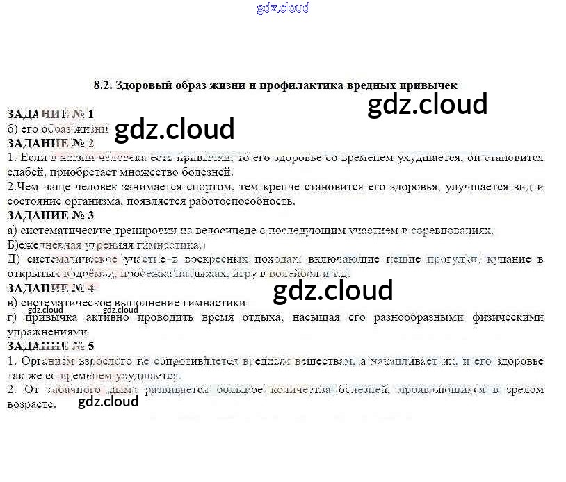 Ответы к главе 8 по ОБЖ 5 класс Рабочая тетрадь Смирнов Просвещение