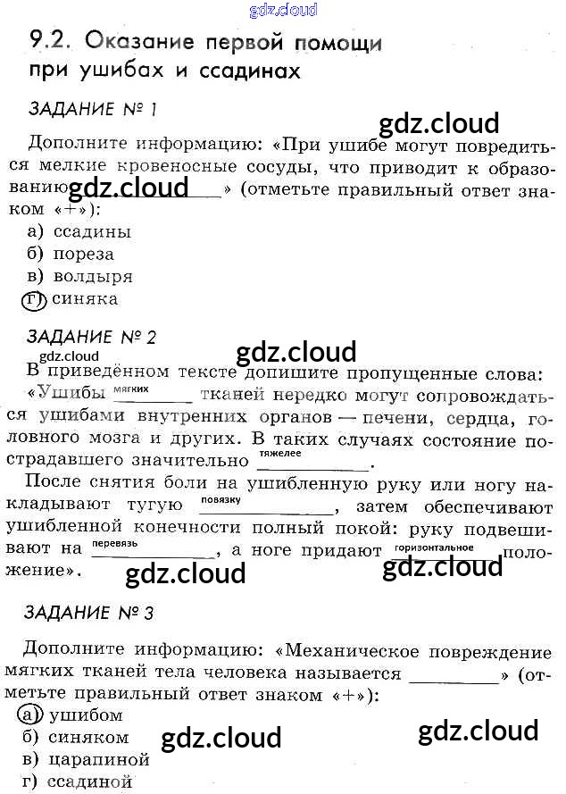 Ответы к главе 9 по ОБЖ 5 класс Рабочая тетрадь Смирнов Просвещение