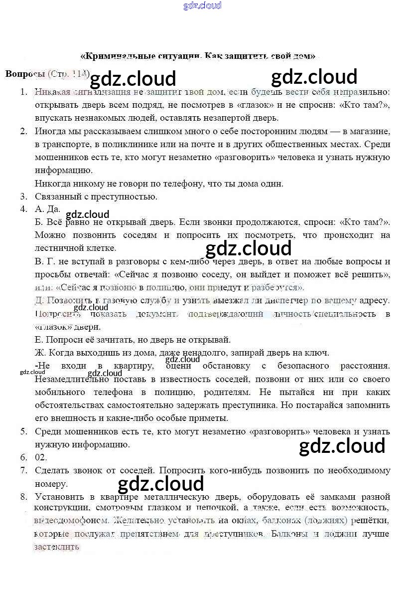 Ответ на задание 114 Учебник ОБЖ за 5 (пятый) класс Фролов, Шолох, Юрьева, Мишин 2015 ФГОС онлайн и без номера телефона.