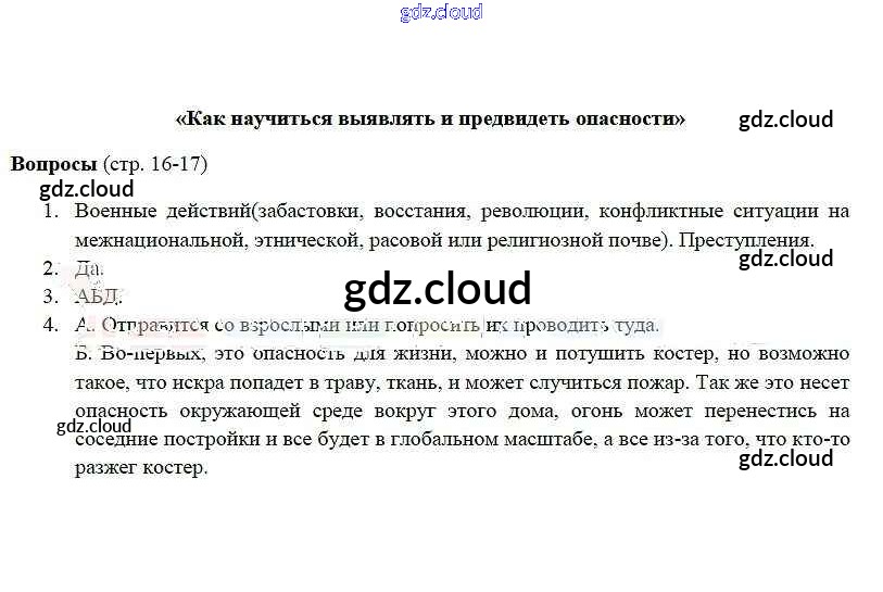 Ответ на задание 16-17 Учебник ОБЖ за 5 (пятый) класс Фролов, Шолох, Юрьева, Мишин 2015 ФГОС онлайн и без номера телефона.