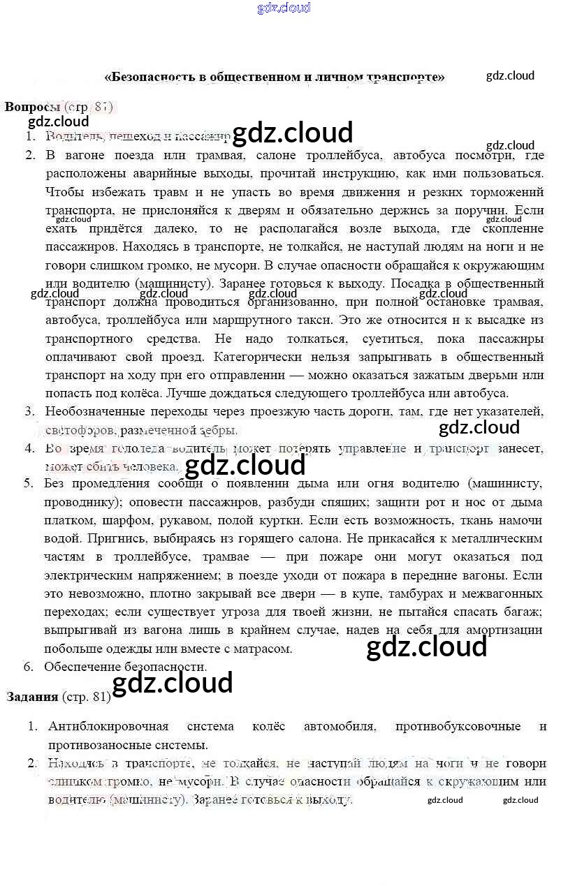 Ответ на задание 81 Учебник ОБЖ за 5 (пятый) класс Фролов, Шолох, Юрьева, Мишин 2015 ФГОС онлайн и без номера телефона.