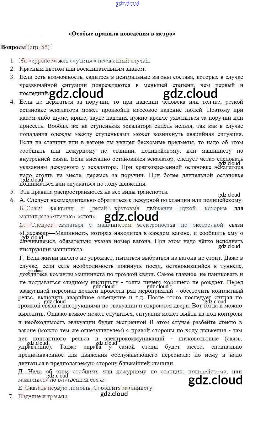 Ответ на задание 85 Учебник ОБЖ за 5 (пятый) класс Фролов, Шолох, Юрьева, Мишин 2015 ФГОС онлайн и без номера телефона.