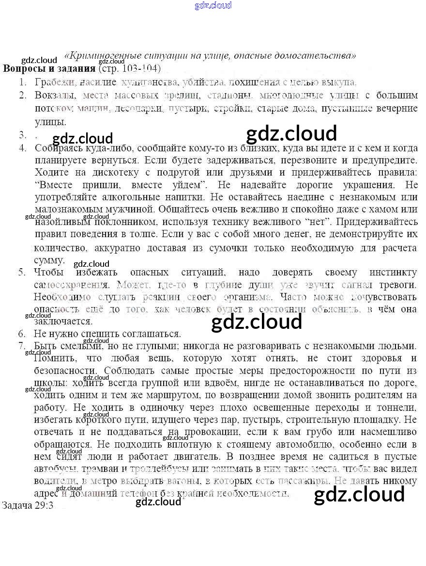 Ответ на задание 103-104 Учебник ОБЖ за 5 (пятый) класс Поляков, Кузнецов, Марков, Латчук Вертикаль 2015 ФГОС онлайн и без номера телефона.