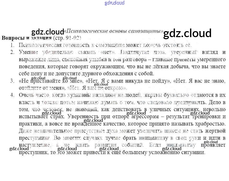 Ответ на задание 91-92 Учебник ОБЖ за 5 (пятый) класс Поляков, Кузнецов, Марков, Латчук Вертикаль 2015 ФГОС онлайн и без номера телефона.
