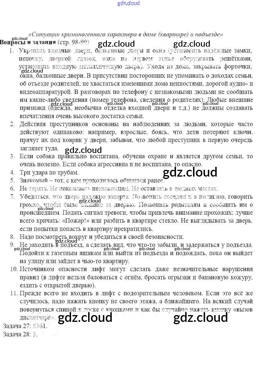 Ответ на задание 98-99 Учебник ОБЖ за 5 (пятый) класс Поляков, Кузнецов, Марков, Латчук Вертикаль 2015 ФГОС онлайн и без номера телефона.