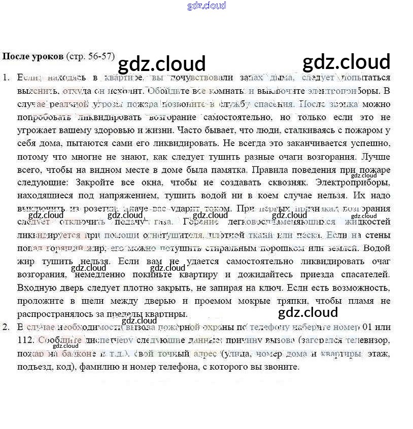 Ответ на задание 56-57 Учебник ОБЖ за 5 (пятый) класс Смирнов, Хренников 2016 ФГОС онлайн и без номера телефона.