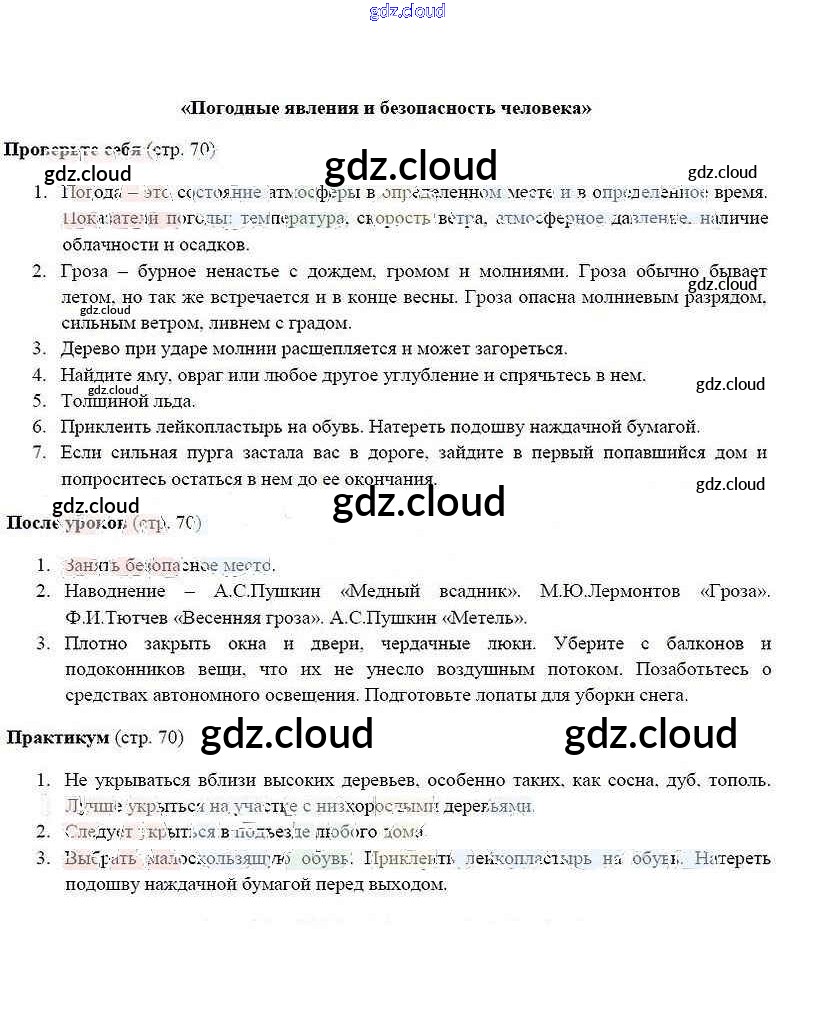 Ответ на задание 70 Учебник ОБЖ за 5 (пятый) класс Смирнов, Хренников 2016 ФГОС онлайн и без номера телефона.