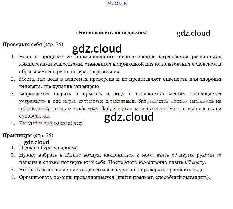 Ответ на задание 75 Учебник ОБЖ за 5 (пятый) класс Смирнов, Хренников 2016 ФГОС онлайн и без номера телефона.