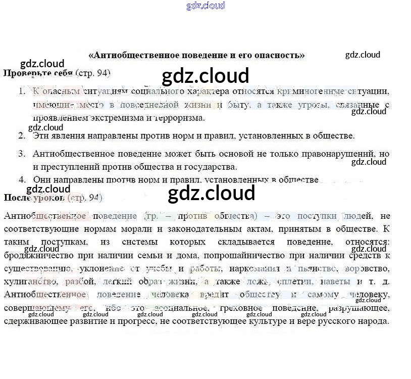 Ответ на задание 94 Учебник ОБЖ за 5 (пятый) класс Смирнов, Хренников 2016 ФГОС онлайн и без номера телефона.