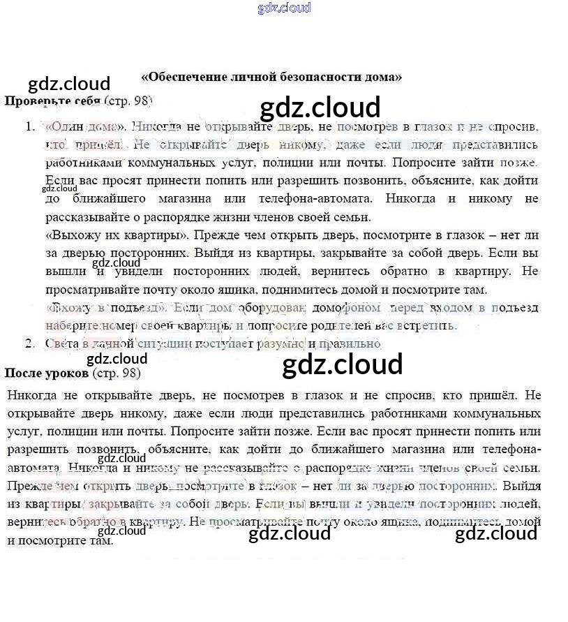 Ответ на задание 98 Учебник ОБЖ за 5 (пятый) класс Смирнов, Хренников 2016 ФГОС онлайн и без номера телефона.