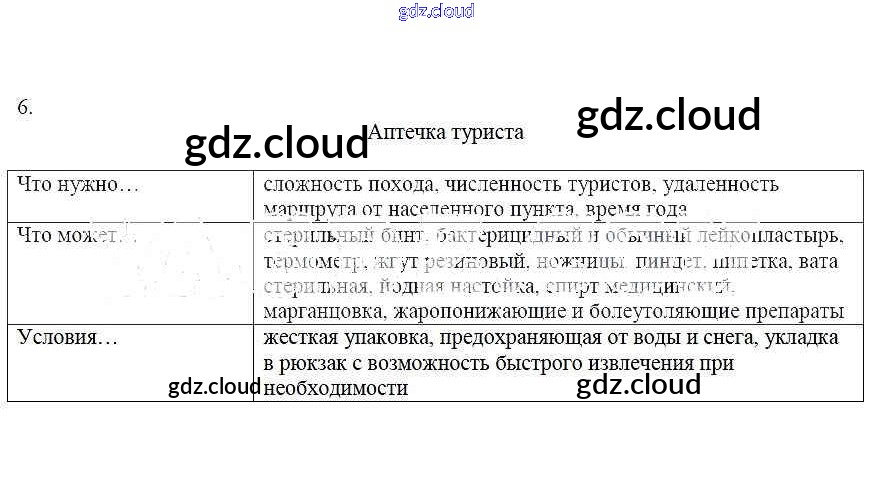 Ответы к теме: 4. Определение необходимого снаряжения для похода по ОБЖ 6 класс Рабочая тетрадь Егорова Лицей