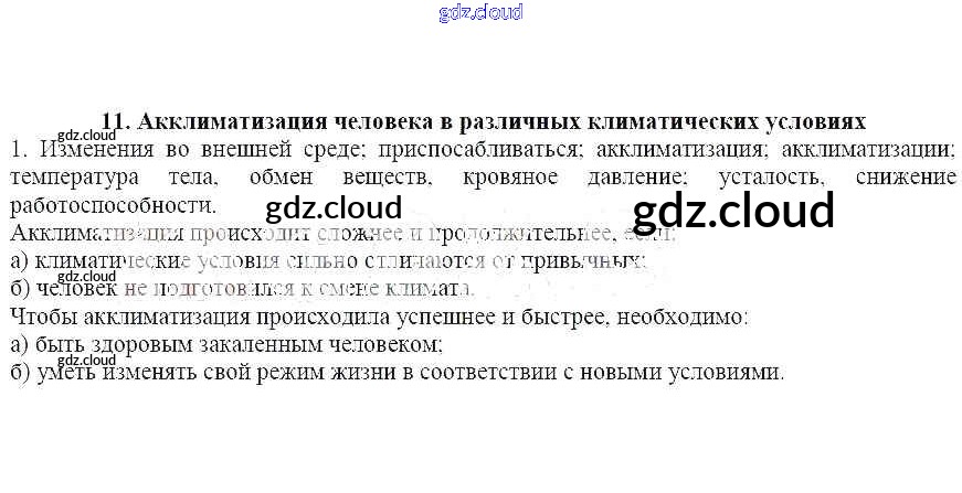 Ответы к теме: 11. Акклиматизация человека в различных климатических условиях по ОБЖ 6 класс Рабочая тетрадь Егорова Лицей