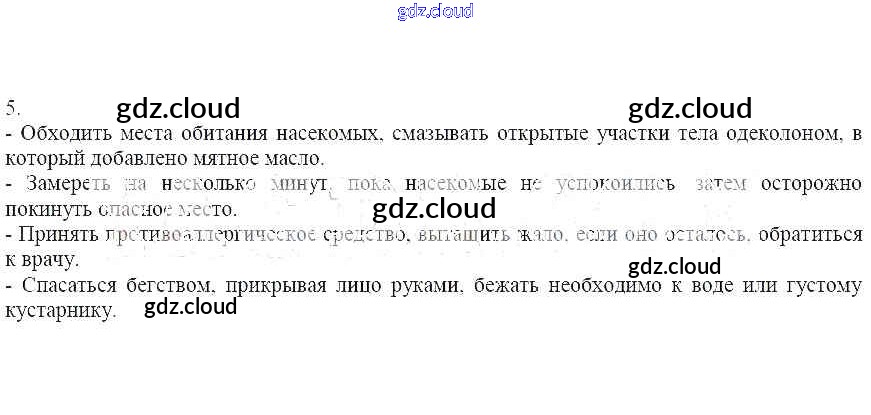 Ответы к теме: 21. Укусы насекомых и защита от них по ОБЖ 6 класс Рабочая тетрадь Егорова Лицей