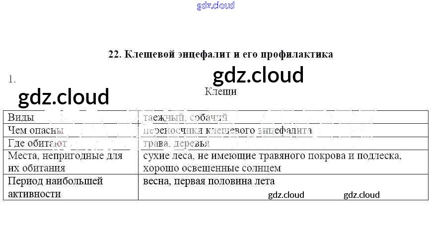 Ответы к теме: 22. Клещевой энцефалит и его профилактика по ОБЖ 6 класс Рабочая тетрадь Егорова Лицей