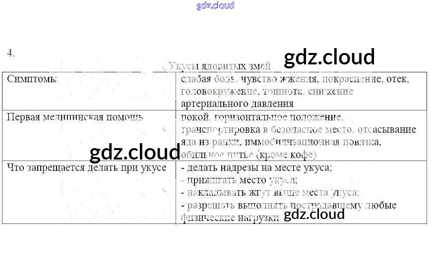 Ответы к теме: 26. Оказание первой медицинской помощи при укусах змей и насекомых по ОБЖ 6 класс Рабочая тетрадь Егорова Лицей