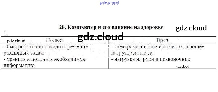 Ответы к теме: 28. Компьютер и его влияние на здоровье по ОБЖ 6 класс Рабочая тетрадь Егорова Лицей