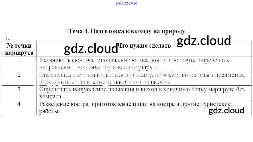 Ответы к теме: 4. Подготовка к выходу на природу по ОБЖ 6 класс Рабочая тетрадь Демидов Лицей
