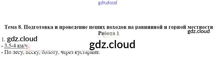 Работа 1 Ответы к теме: 8. Подготовка и проведение пеших походов на равнинной и горной местности по ОБЖ 6 класс Рабочая тетрадь Демидов Лицей