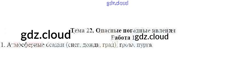 Работа 1 Ответы к теме: 22. Опасные погодные явления по ОБЖ 6 класс Рабочая тетрадь Демидов Лицей