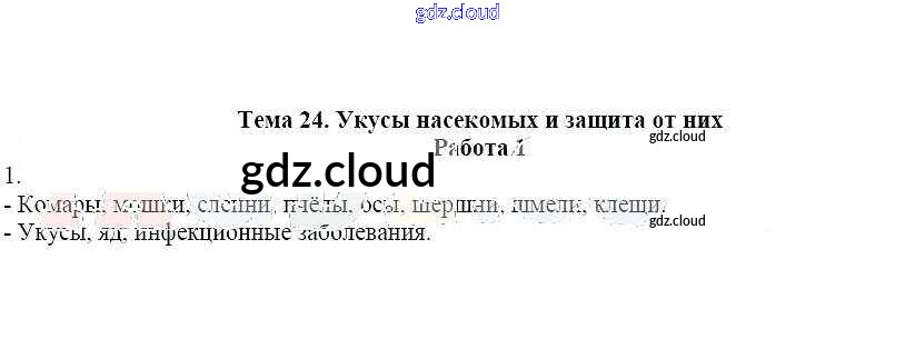 Работа 1 Ответы к теме: 24. Укусы насекомых и защита от них по ОБЖ 6 класс Рабочая тетрадь Демидов Лицей